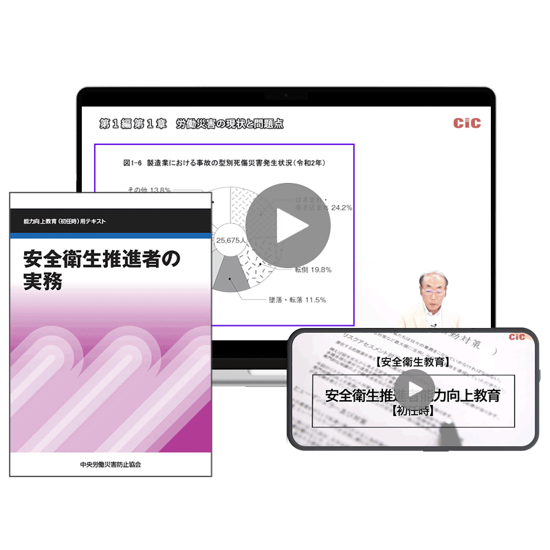CICの講座は、労働安全衛生法第十九条の二(安全管理者等に対する教育等)に定められているカリキュラム・内容になっており、関係法令の内容、基準を満たしています。
