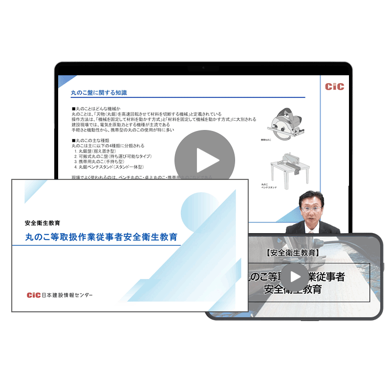 CICの講座は、平成22年7月14日 基安発0714第1号(「携帯用丸のこ盤」を使用する作業に従事する者に対する安全教育の徹底について)に定められているカリキュラム・内容になっており、関係法令の内容、基準を満たしています。