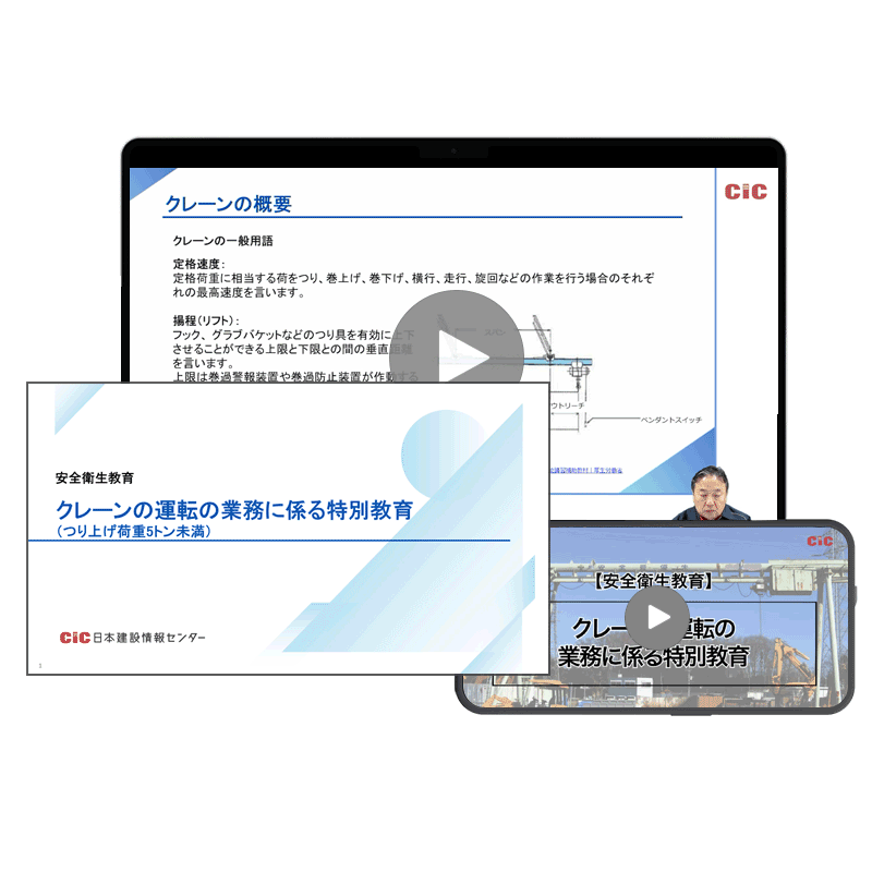 CICの講座は、労働安全衛生規則第36条第15号(クレーン運転の業務に係る特別教育)に定められているカリキュラム・内容になっており、関係法令の内容、基準を満たしています。