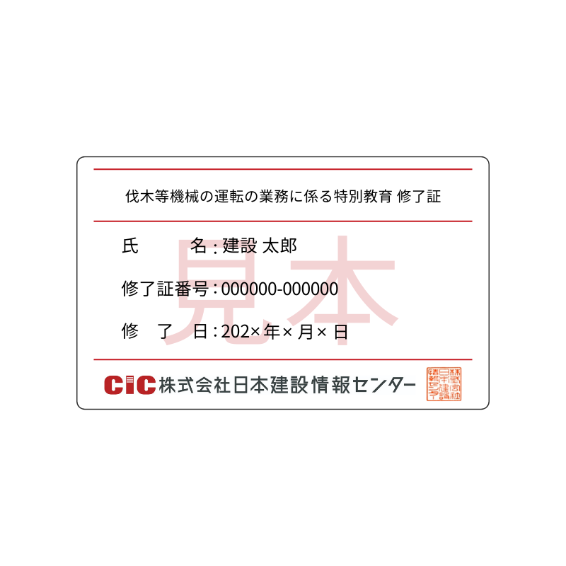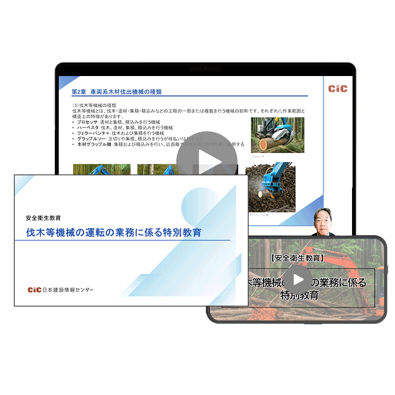CICの講座は、安全衛生特別教育規程八条 2(伐木等機械の運転の業務に係る特別教育)に定められているカリキュラム・内容になっており、関係法令の内容、基準を満たしています。