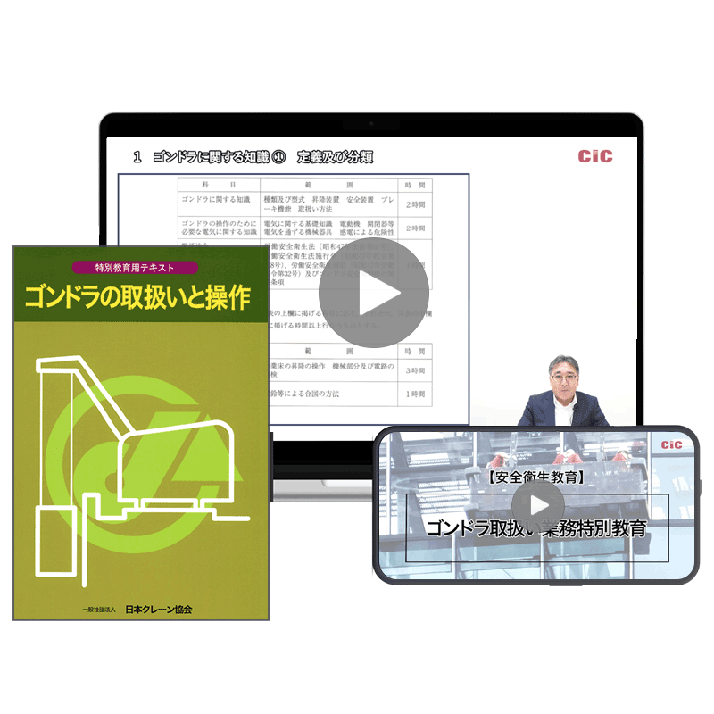 CICの講座は、ゴンドラ取扱い業務特別教育規程に定められているカリキュラム・内容になっており、関係法令の内容、基準を満たしています。
