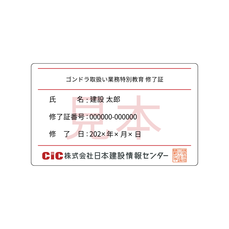 貴社にて実技実習後、弊社CICよりお送りしたカード型の『学科修了証』の裏面に実技実施日などを記入する署名欄がございますので、そちらに貴社の実技実施責任者(例:特別教育修了者、実務経験者など)から署名をいただくことで、学科+実技が修了していることの証明が可能です(オプションでカード型修了証をご選択いただいた方)。