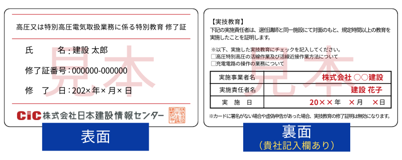 貴社にて実技実習後、弊社CICよりお送りしたカード型の『学科修了証』の裏面に実技実施日などを記入する署名欄がございますので、そちらに貴社の実技実施責任者(例:特別教育修了者、実務経験者など)から署名をいただくことで、学科+実技が修了していることの証明が可能です。