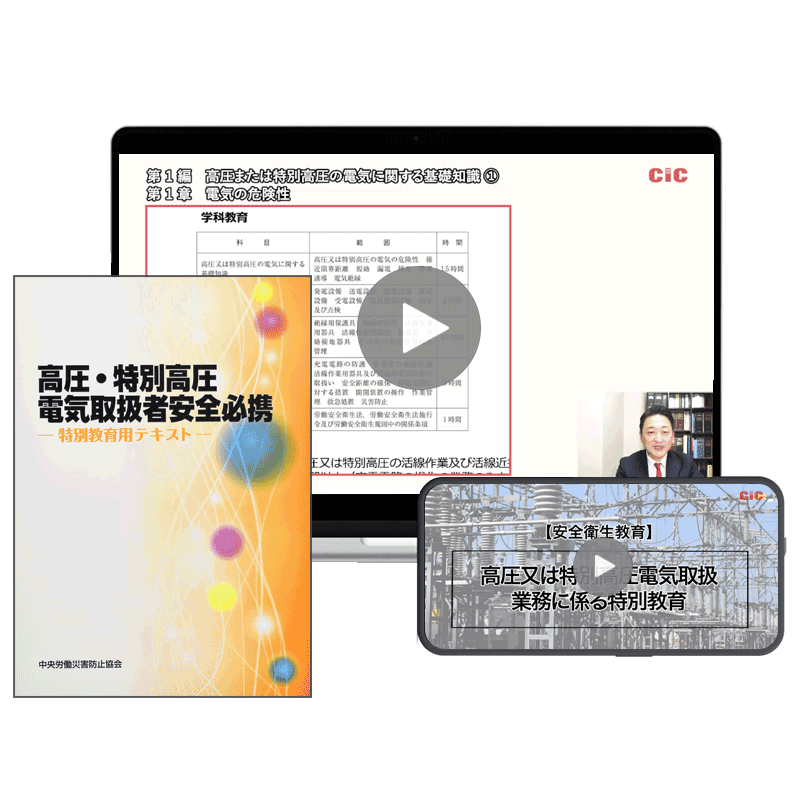 CICの講座は、安全衛生特別教育規 第五条(電気取扱業務に係る特別教育)に定められているカリキュラム・内容になっており、関係法令の内容、基準を満たしています。
