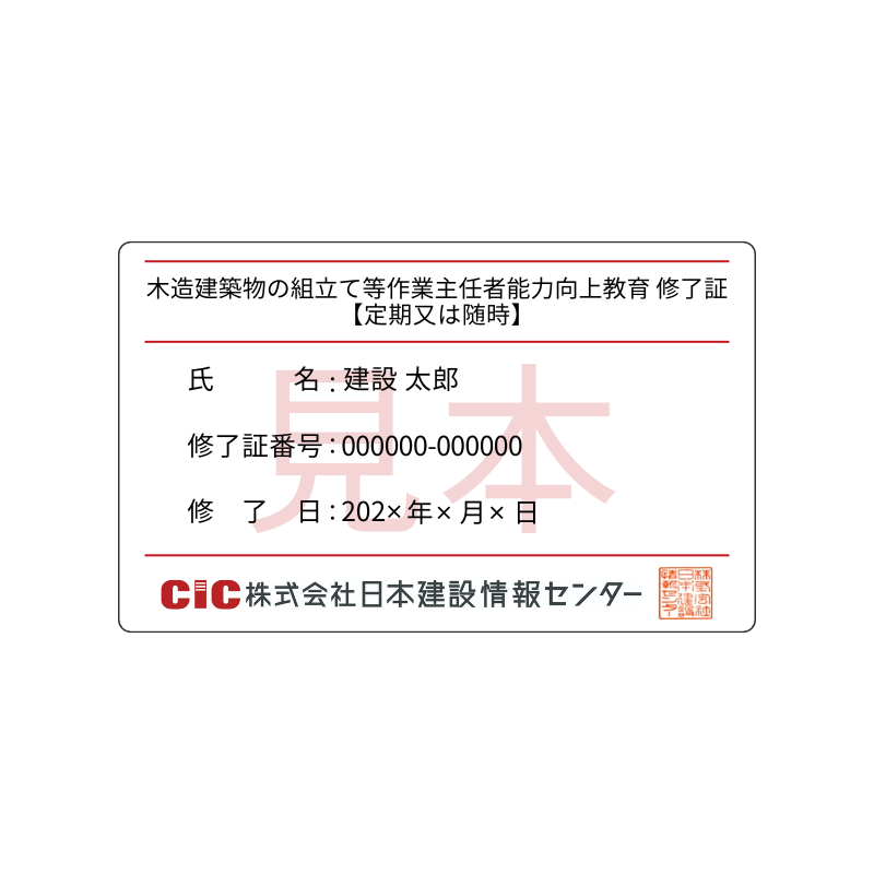 木造建築物の組立て等作業主任者能力向上教育の修了証に有効期限はありません。