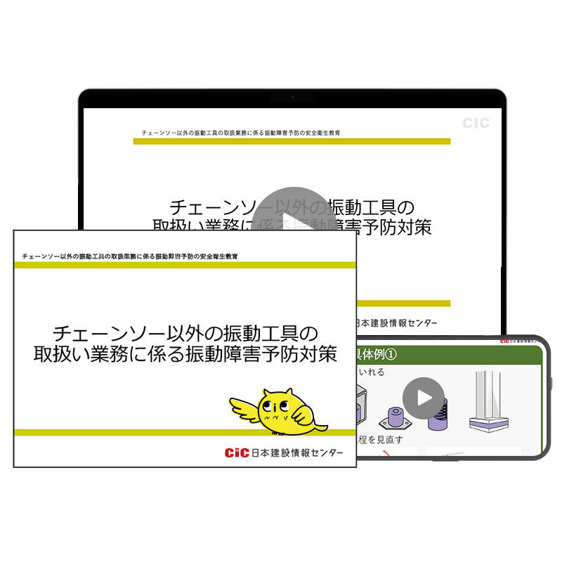 CICの講座は、振動工具取扱作業者安全衛生教育規程に定められているカリキュラム・内容になっており、関係法令の内容、基準を満たしています。
