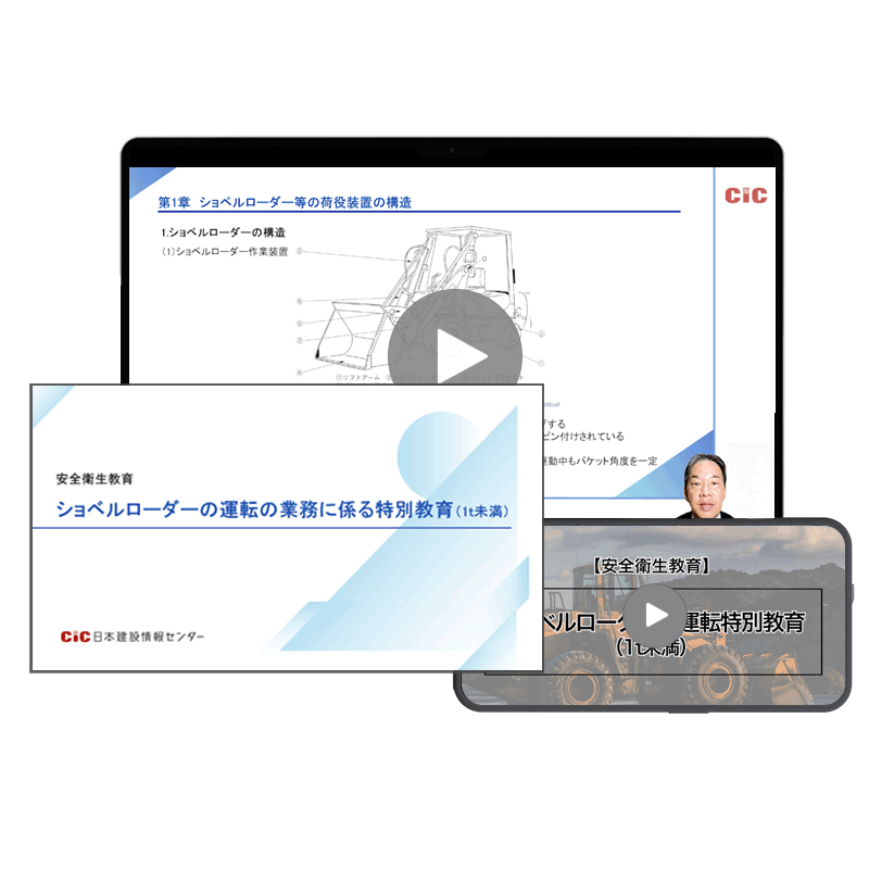CICの講座は、安全衛生特別教育規程 第七条の二(ショベルローダー等の運転の業務に係る特別教育)に定められているカリキュラム・内容になっており、関係法令の内容、基準を満たしています。