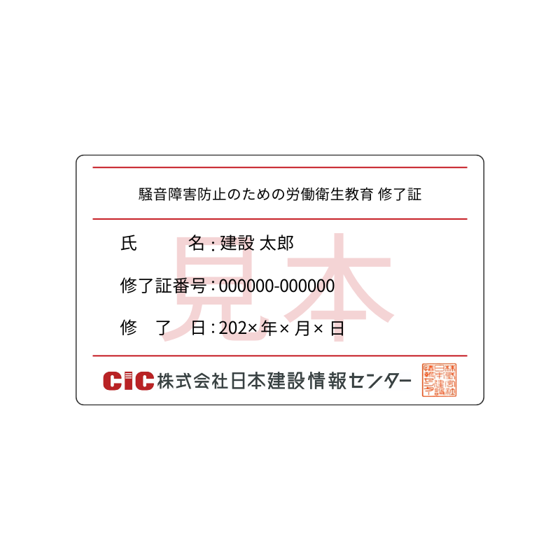 騒音障害防止対策のための労働衛生教育の修了証に有効期限はありません。