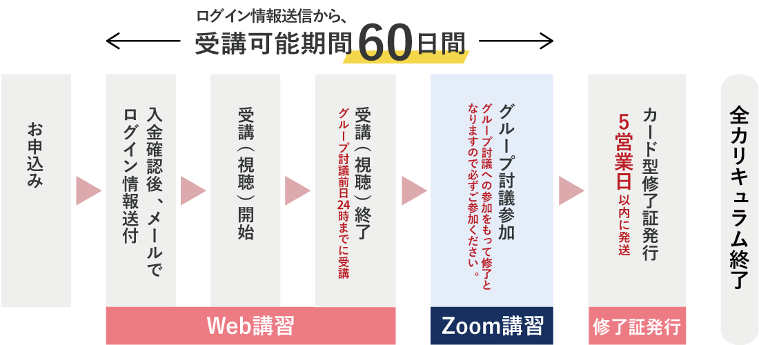 学科をすべて受講後、グループ討議(Zoom講習)にご参加ください。